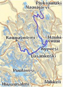 • Naarajärvi - Naarajoki - Niskajärvi - Vehvaa - Rantajoki - Pyhäluomajärvi - Pitkäsjärvi - Pitkäsjoki - Palvalampi - Nykälänjoki - Orjuu - Kyyvesi - Rauhajärvi - Läsänkoski - Puulavesi.